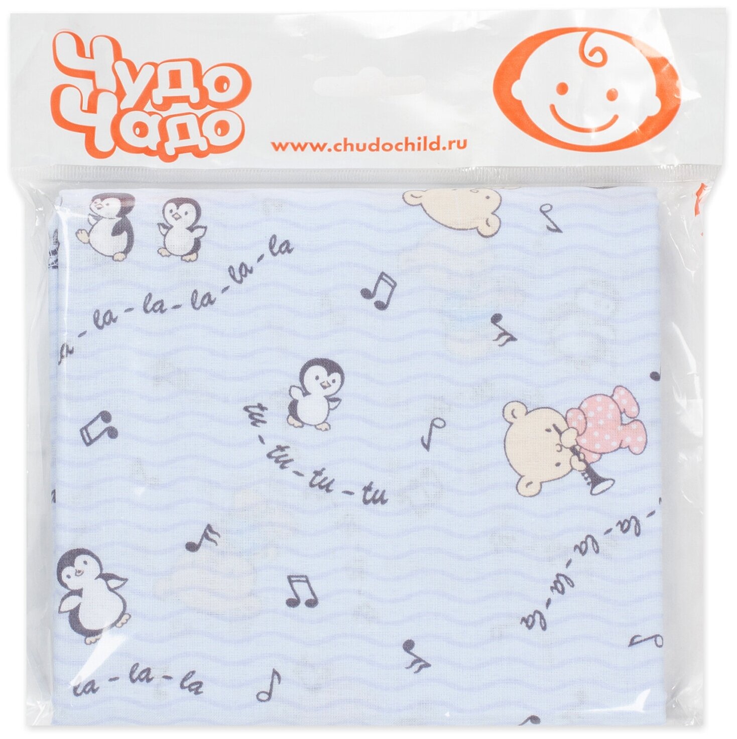 Пеленки для новорожденных ситцевые "Вариации", (1 шт) голубой/пингвины информация: