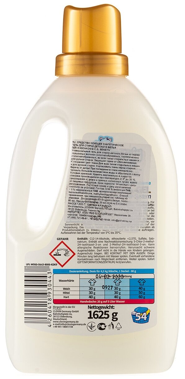 Гель для стирки Der Waschkönig C.G. Sensitive, для детского белья, 1,625 л информация: