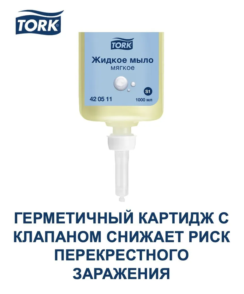 Жидкое мыло для рук в картриджах Tork S1 420511 мягкое, 1 упаковка - 6 картриджей по 1000 мл. информация:
