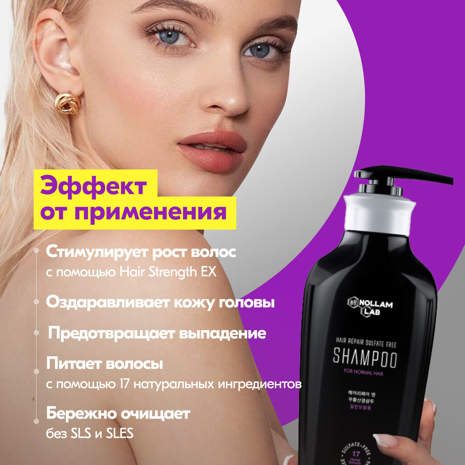 Бессульфатный шампунь для нормальной кожи головы с комплексом против выпадения волос NOLLAM LAB, Sulfate Free Shampoo for Normal Scalp with Anti-Hair Loss Complex 300мл 2 151 ₽