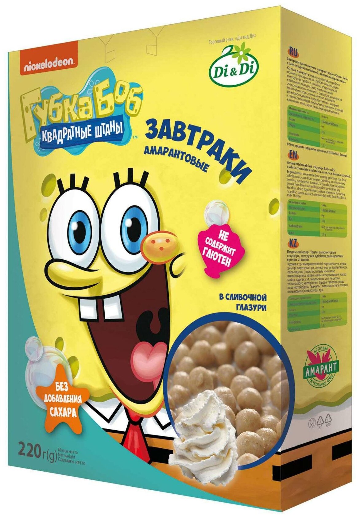 Готовый завтрак Di & Di Завтраки амарантовые Губка Боб шарики в сливочной глазури, коробка