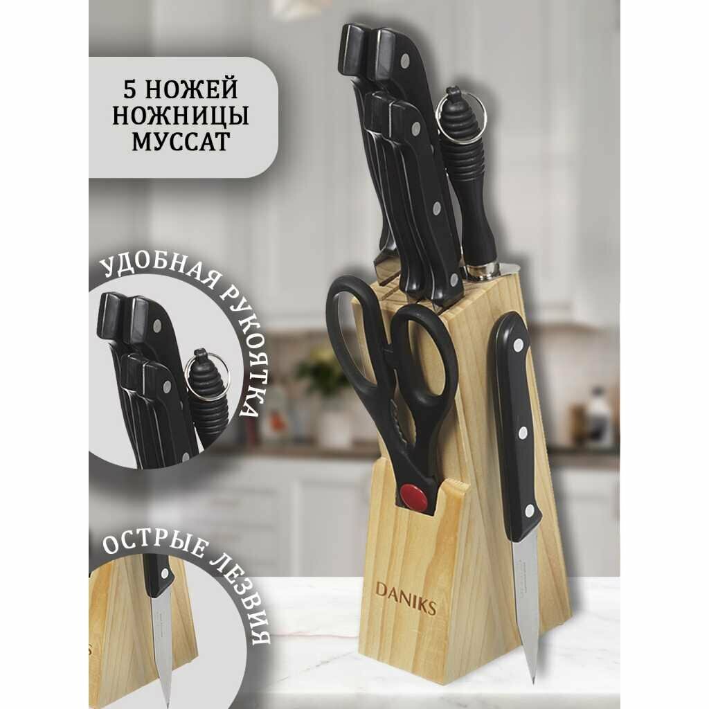 Набор Daniks 5 ножей, ножницы и мусат с подставкой