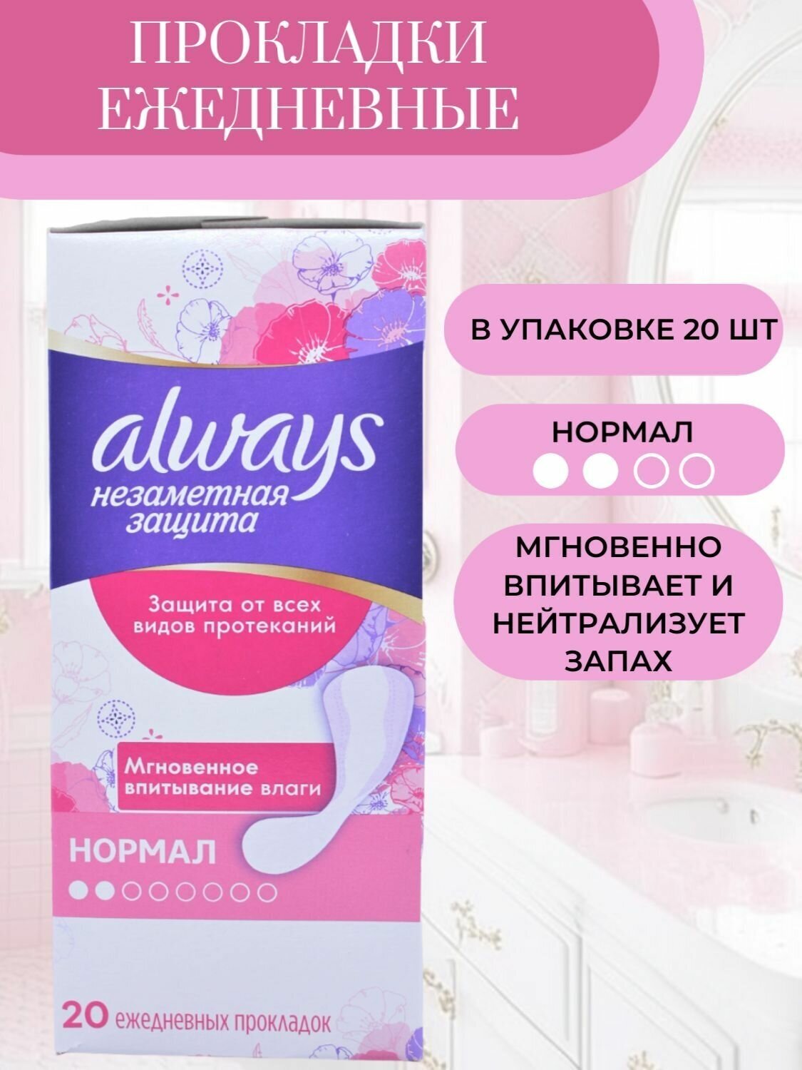 Женские гигиенические ароматизированные Прокладки на каждый день Always Незаметная Защита Нормал, 20 шт.