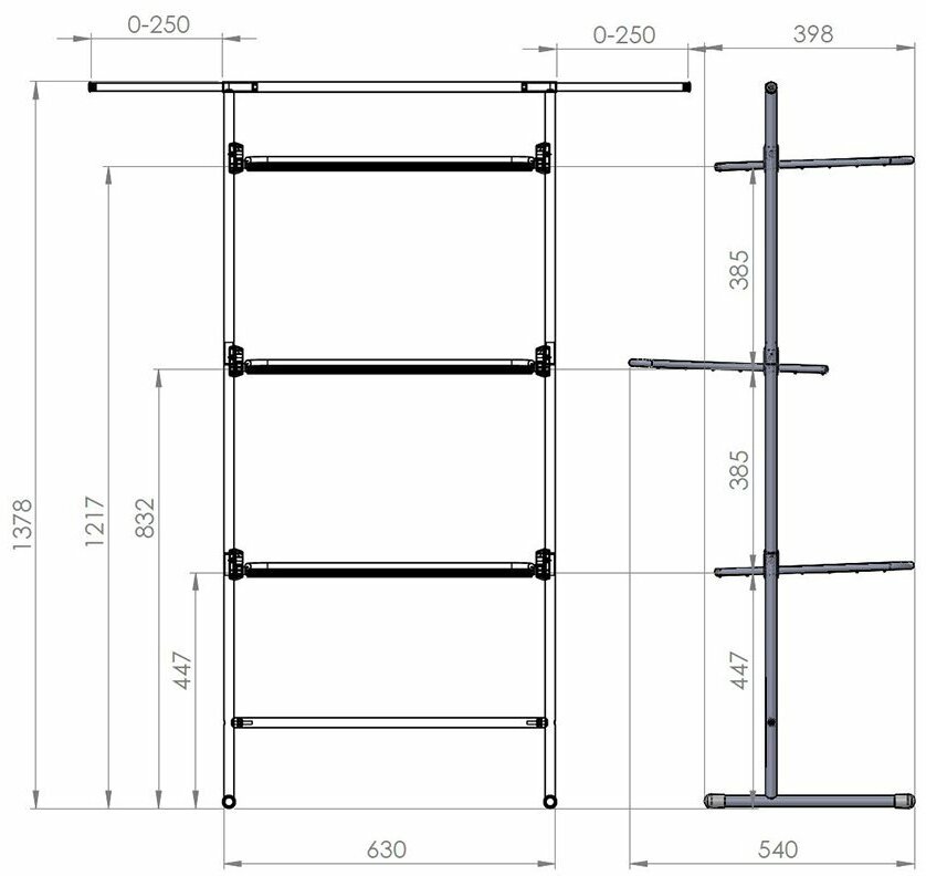 Сушилка для белья /вешалка для одежды напольная, 129х61х61, складная, 2 уровня, цвет серый
