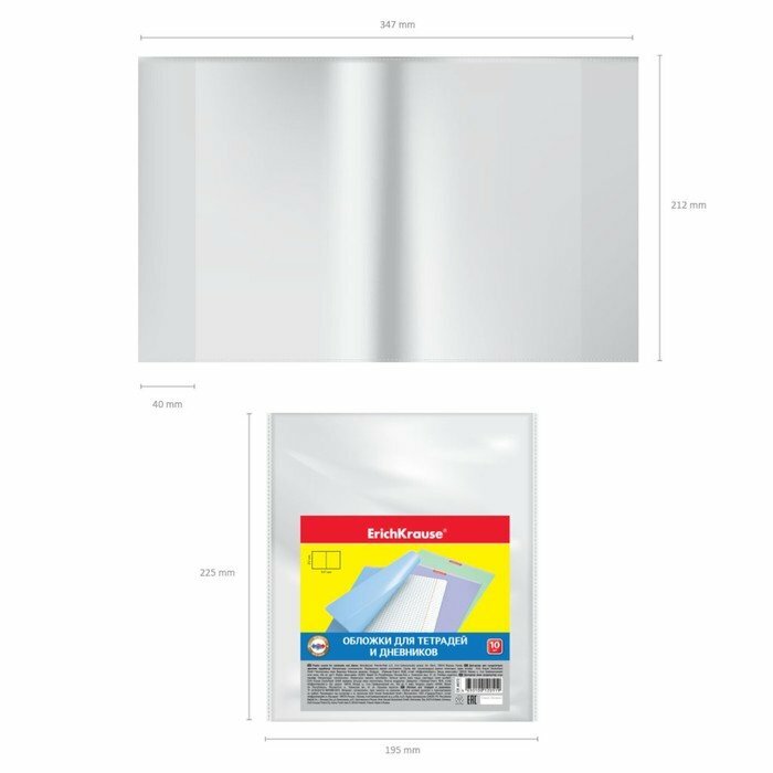 Обложки для тетради и дневника Erich Krause 10 шт, прозрачные, 50 мкм, 212х347 мм (44510)