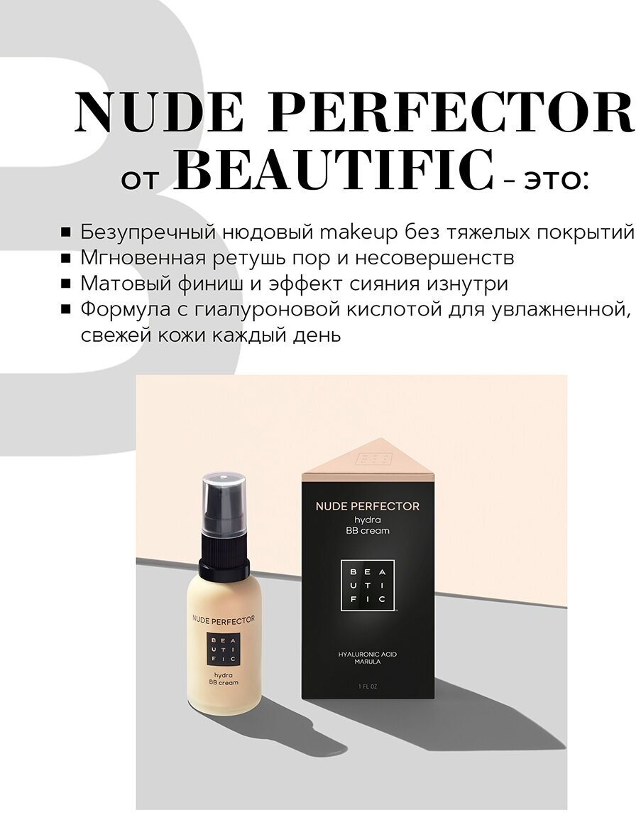10 цен на BB-крем Beautific Nude Perfector с гиалоурановой кислотой №1 Светлый бежевый 30мл 1шт