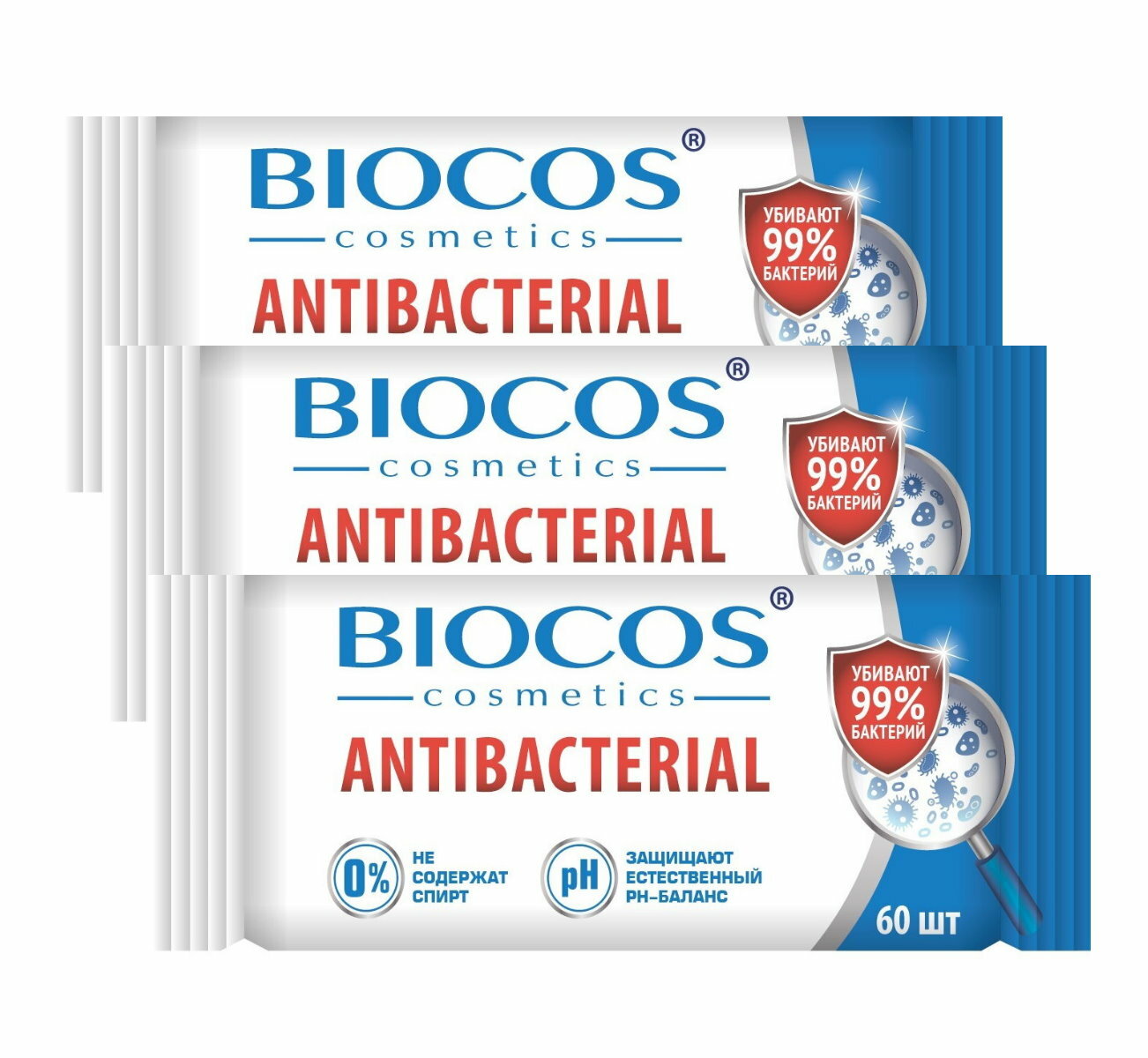 Влажные салфетки BioCos Антибактериальные 60 шт./упак. х 3 упак. информация: