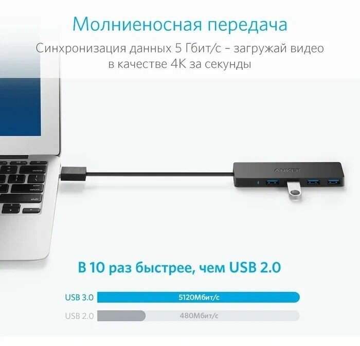 10 цен на Хаб Anker 4-Port Ultra Slim USB3.0 UN Black A7516016