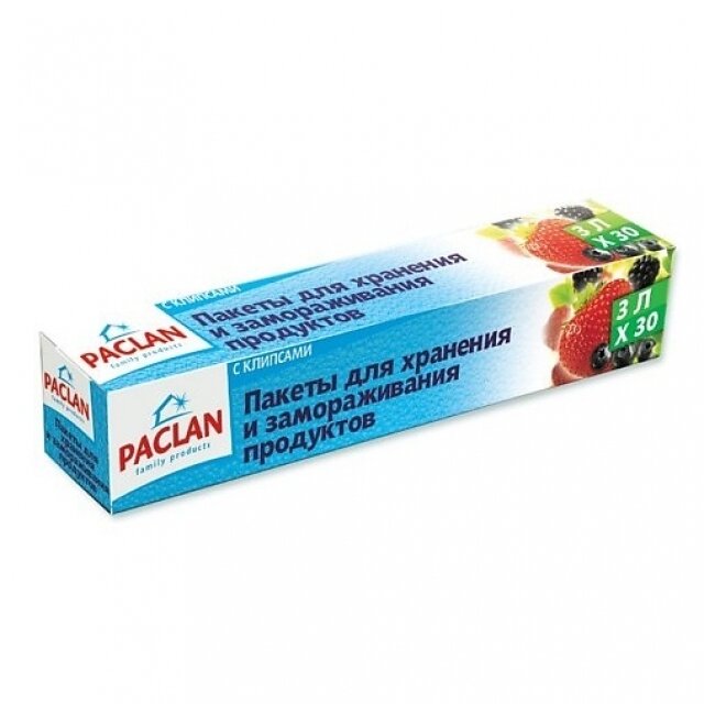Пакеты для заморозки paclan 3л 25х32см 24,5мкм 30шт с клипсами