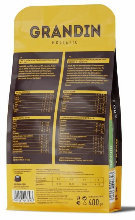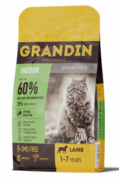Grandin Indoor Сухой корм для кошек, с ягненком, 400 гр. информация: