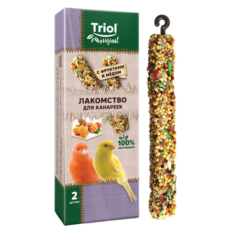 Triol лакомство Original для канареек с фруктами и мёдом, упаковка 2 шт, 55 г
