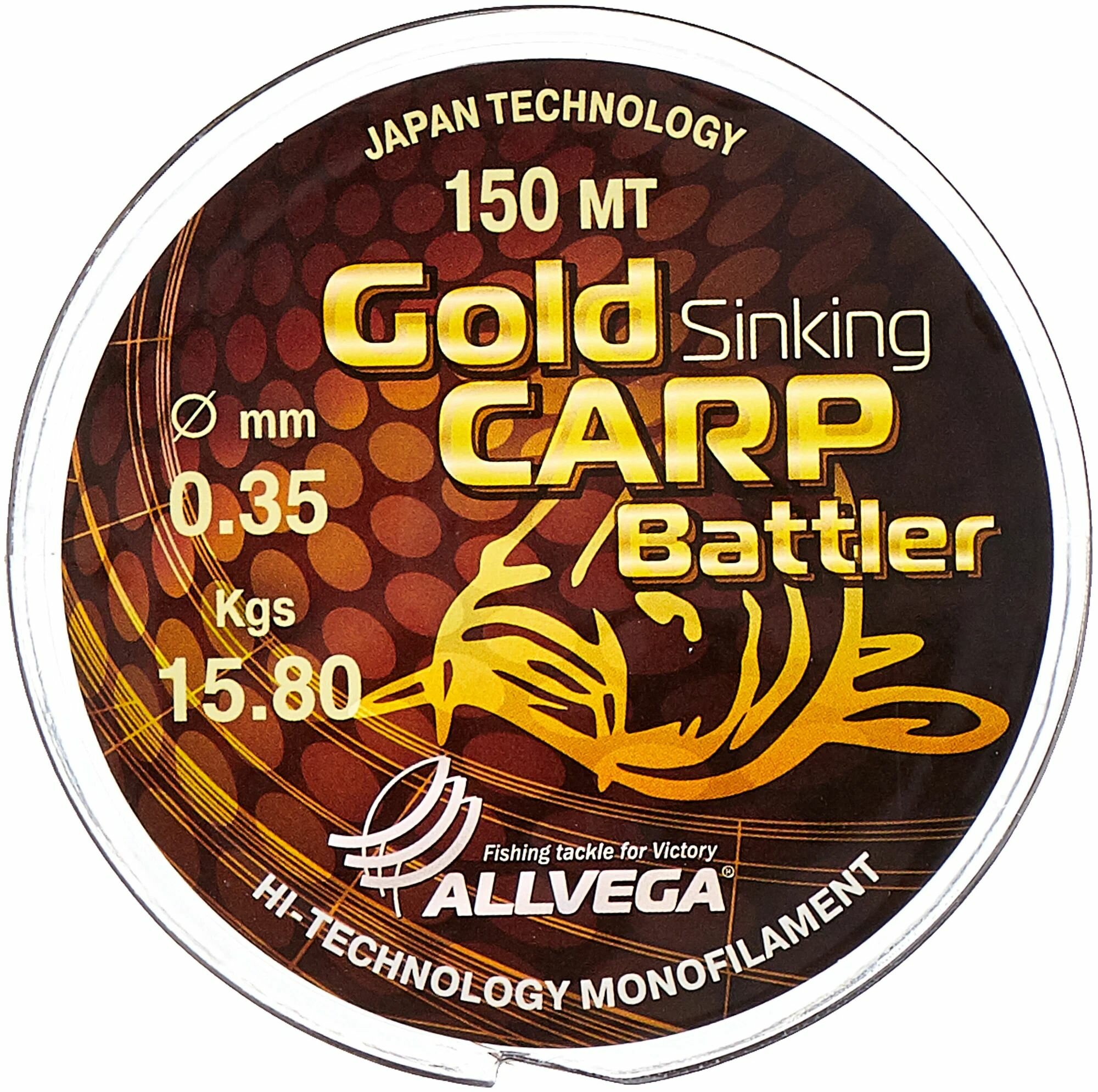 Леска монофильная ALLVEGA "Gold Carp Battler" 150м 0,35мм (15,8кг) коричневая, тонущая информация: