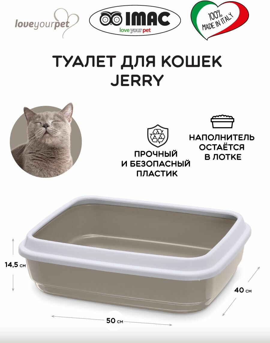 Туалет для кошек Imac с бортом JERRY, светло-серый, 50х40х14,5см (84480) информация: