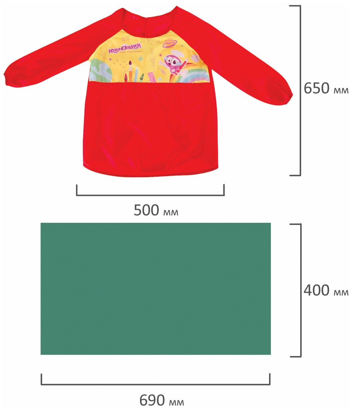 Набор для уроков труда Юнландия Клеенка ПВХ 40х69см + фартук-накидка с рукавами Green 228357