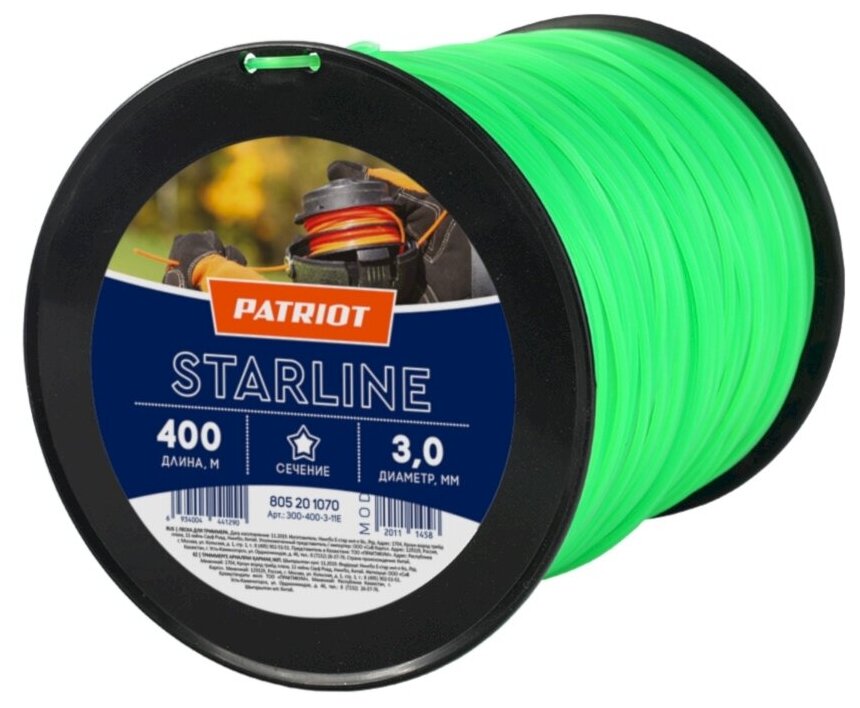 Леска Starline (3.0 мм; 400 м; звезда; зеленая) PATRIOT 300-400-3 805201070 информация: