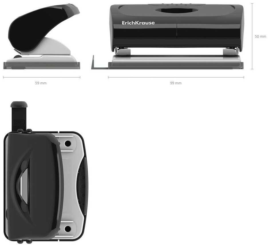 Дырокол ErichKrause Quadro, до 20 листов, диаметр прокола 6 мм, расстояние между проколами 80 мм, черный