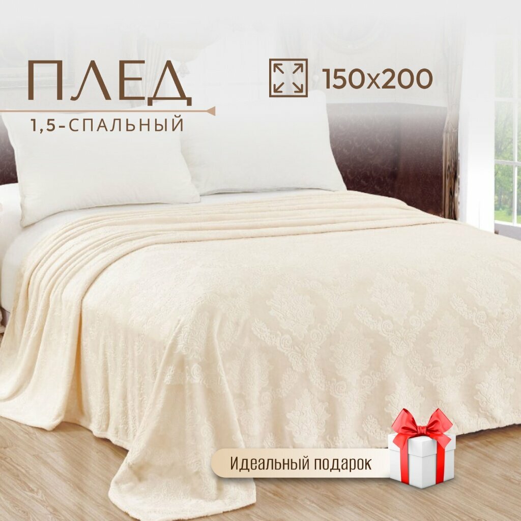 10 цен на Плед 1.5-спальный, 150х200 см, велсофт жаккард, 100% полиэстер, Cleo, Парма, молочный, 150/062-OP