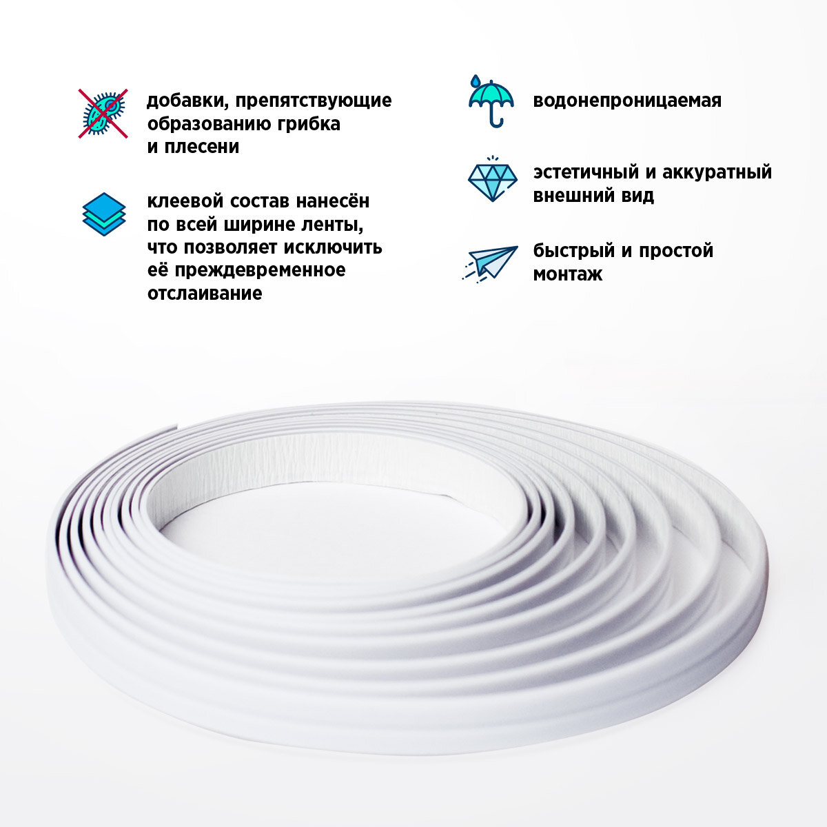 Лента бордюрная для ванн и раковин Aviora, 12,8 мм x 3,35 м, белая 813 ₽