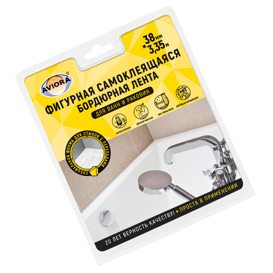 Бордюрная клейкая лента для ванн и раковин, 38 мм х 3,35 м, фигурная, AVIORA