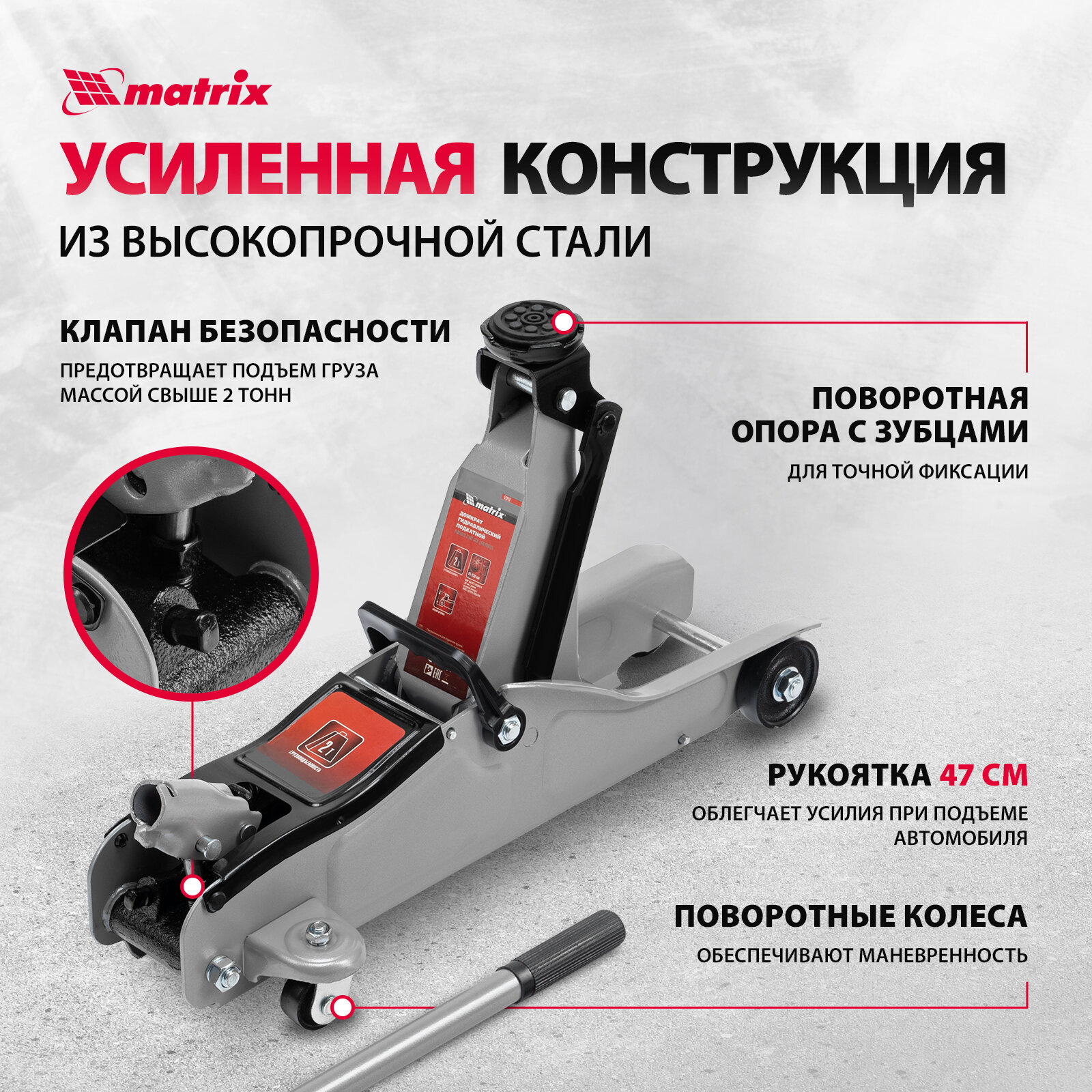 MATRIX Домкрат гидравлический подкатной 2 т MATRIX 51019