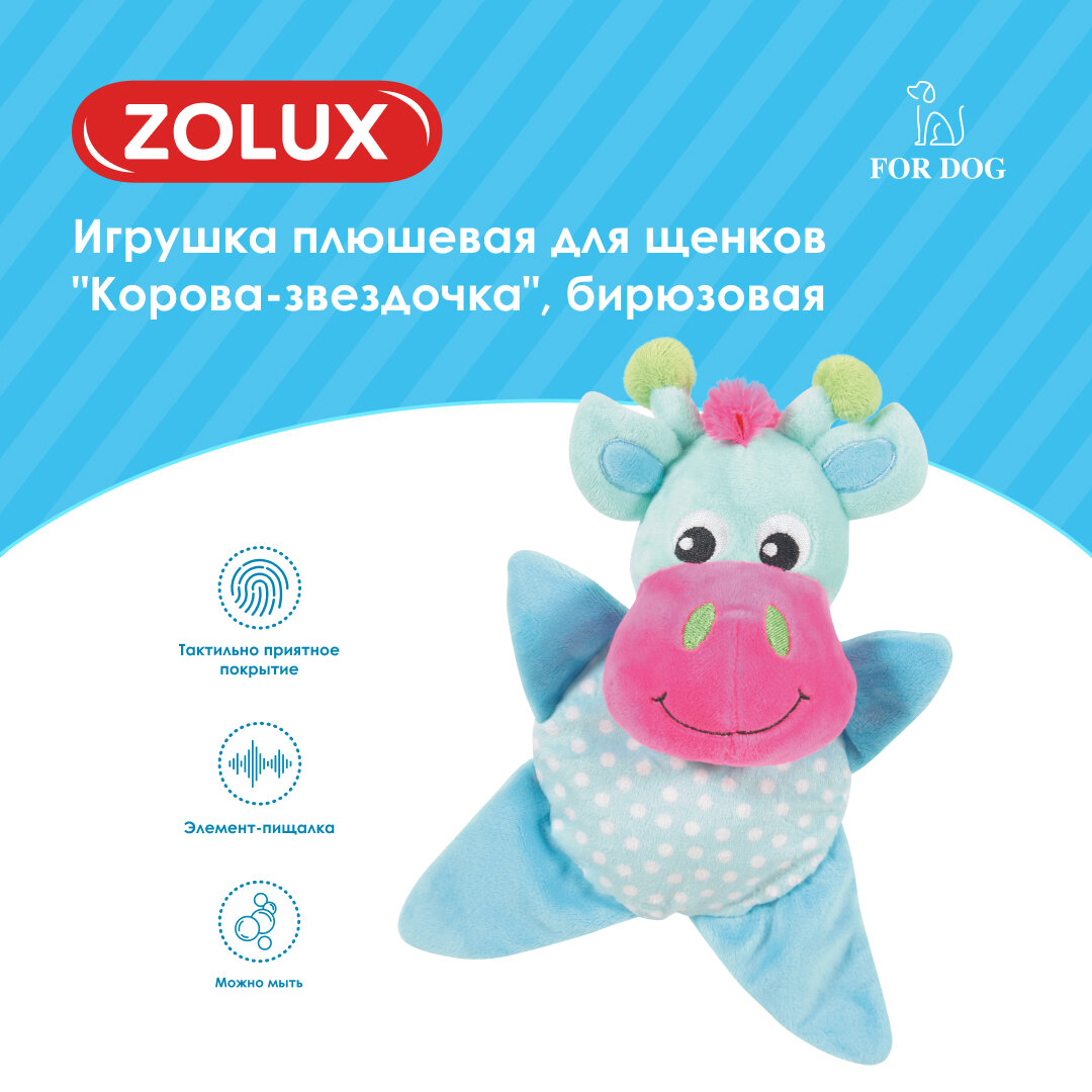 Zolux игрушка плюшевая для щенков, корова-звездочка, бирюзовая