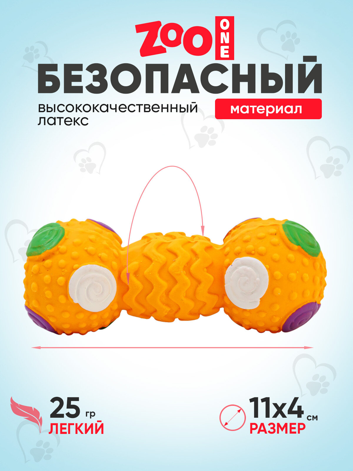 Отзывы на Игрушка для собак с пищалкой (мягкий латекс) Zoo One Гантель с шипами 11 см