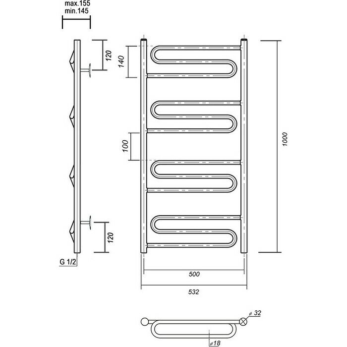 Полотенцесушитель Омега (Ширина:500, Высота:1000)