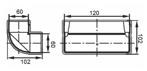 Колено плоское вертикальное для воздуховода '612КВП' 60х120 информация: