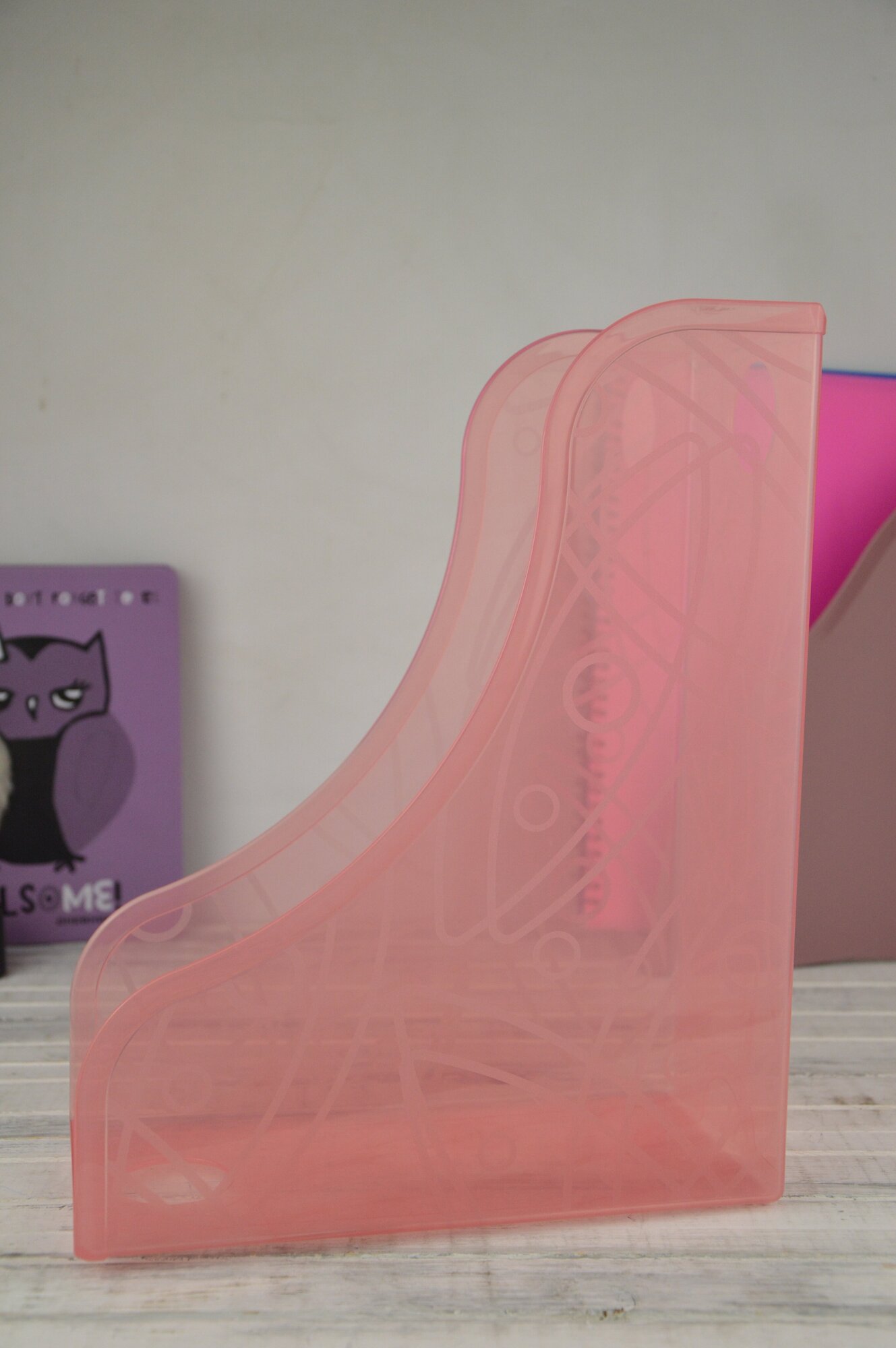 Лоток для бумаг вертикальный для папок, широкий, с рисунком, тонированный розовый 507 ₽