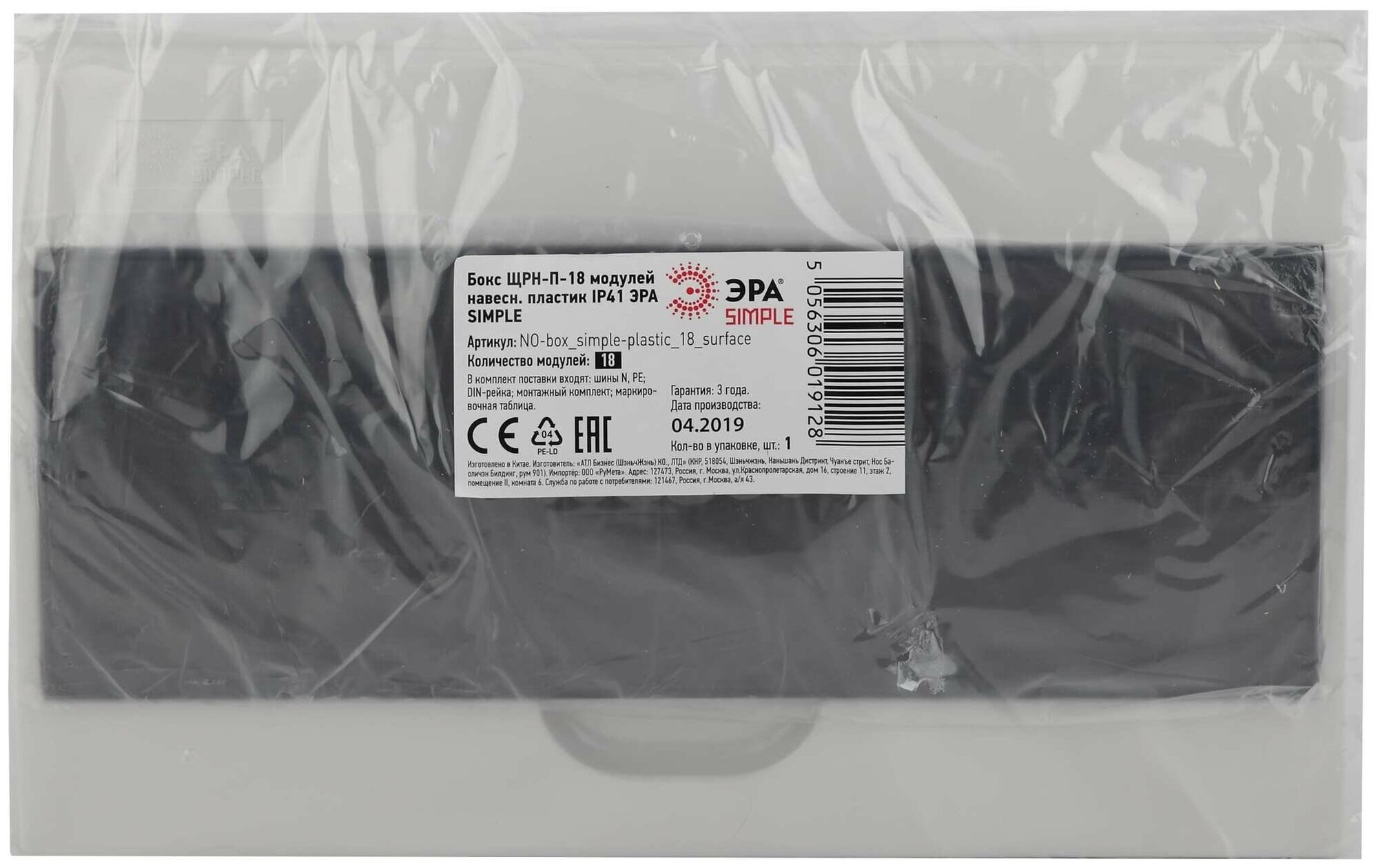 Бокс ЩРН-П-18 мод. навесной пластик IP41 SIMPLE NO-box_simple-plastic_18_surface | код. Б0041527 | Эра ( 1шт. )