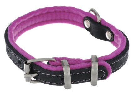 Ошейник Аркон кожаный с подкладом "Фетр", 1,6 см, ОШ 20-28 см, чёрный/фиолетовый