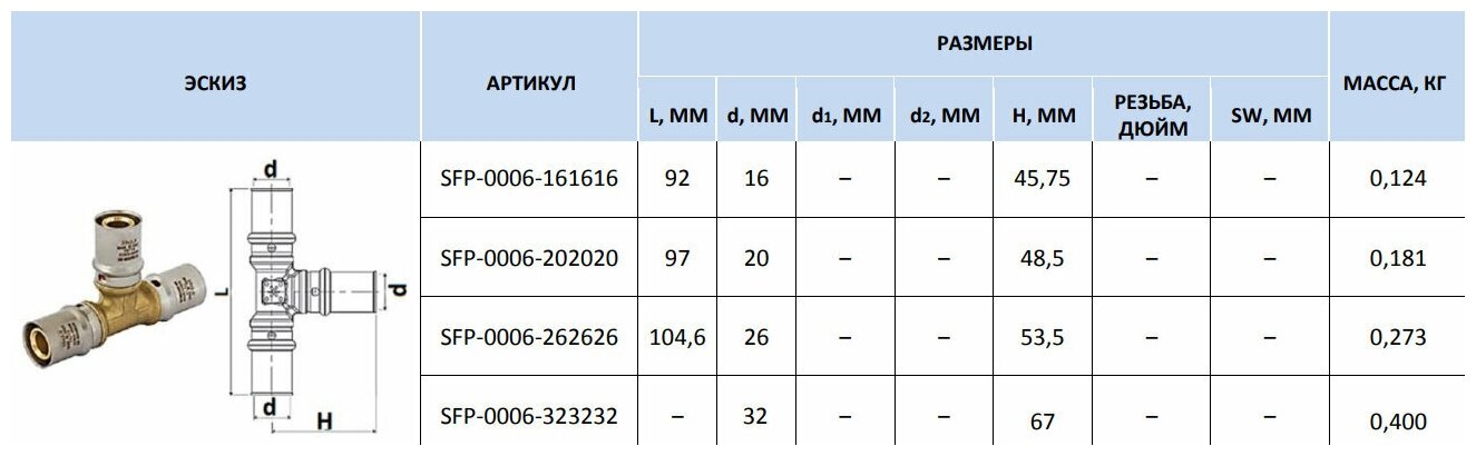 Тройник равнопроходный 16х16х16 для металлопластиковых труб прессовой, STOUT SFP-0006-161616 информация: