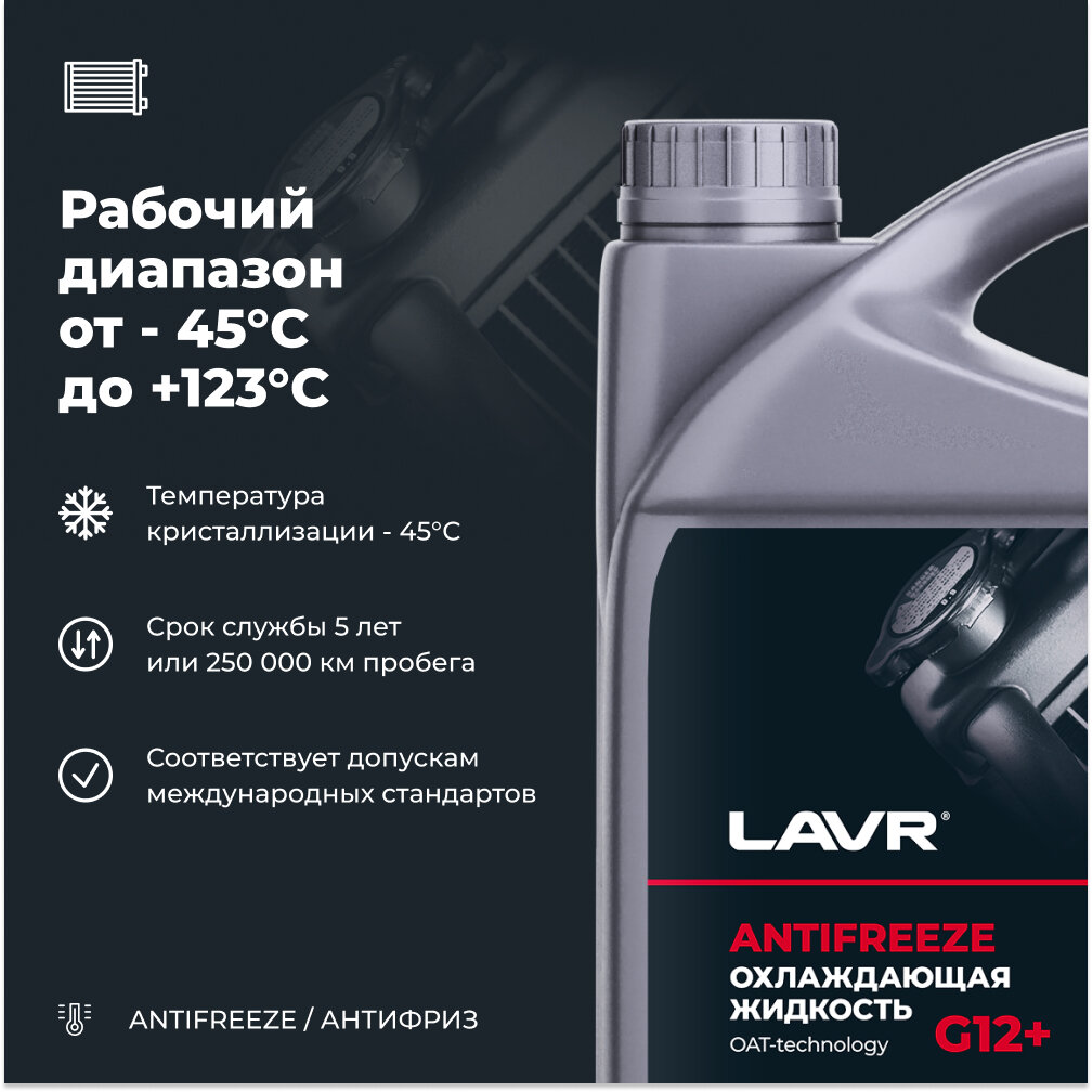 Антифриз Lavr G12+, красный, -45°C, 5кг, арт. Ln1710 1 519 ₽
