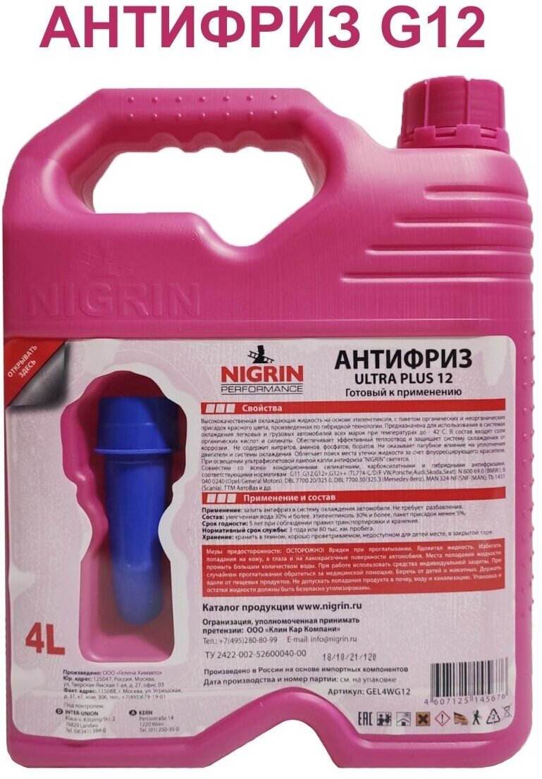 Антифриз красный Ultra Plus 12 (G12) - 4л. информация: