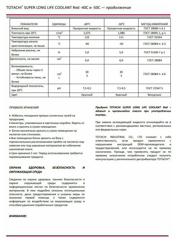 TOTACHI 41902 охаждающая жидкость TOTACHI SUPER LLC RED -50C 2