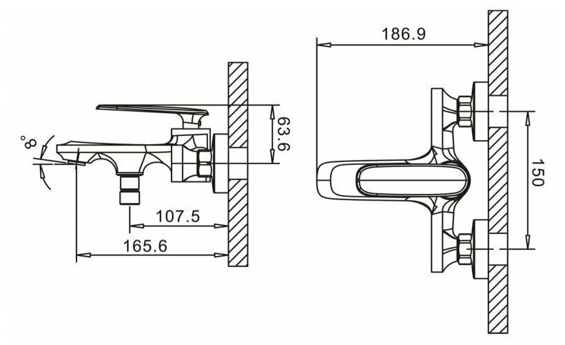 Смеситель на раковину настенный Эверест B46-350 с круглым поворотным изливом, кран-буксы 1/2", хром