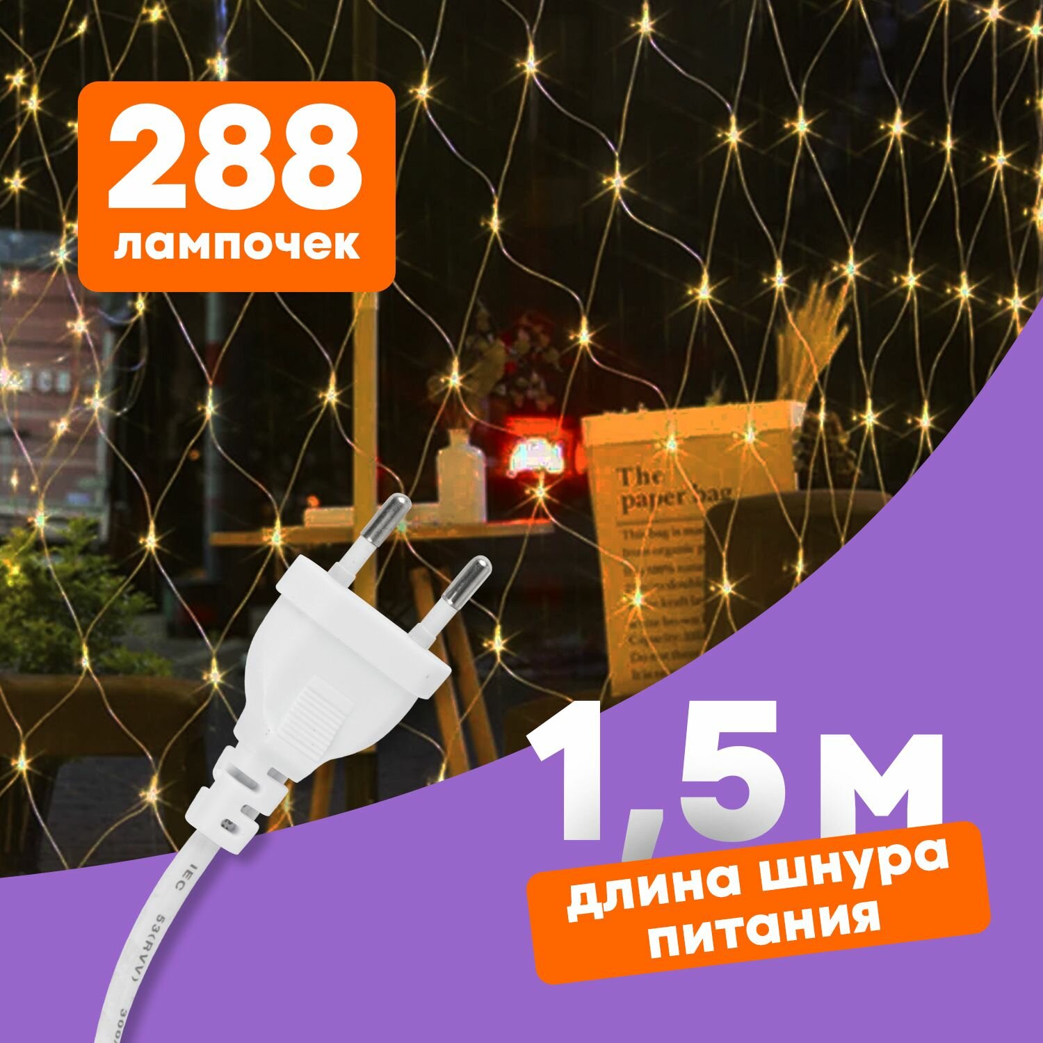 Гирлянда Сеть 2х1,5м, свечение с динамикой, прозрачный ПВХ, 288 LED, 230 В, цвет: Тёплый белый 8 722 ₽