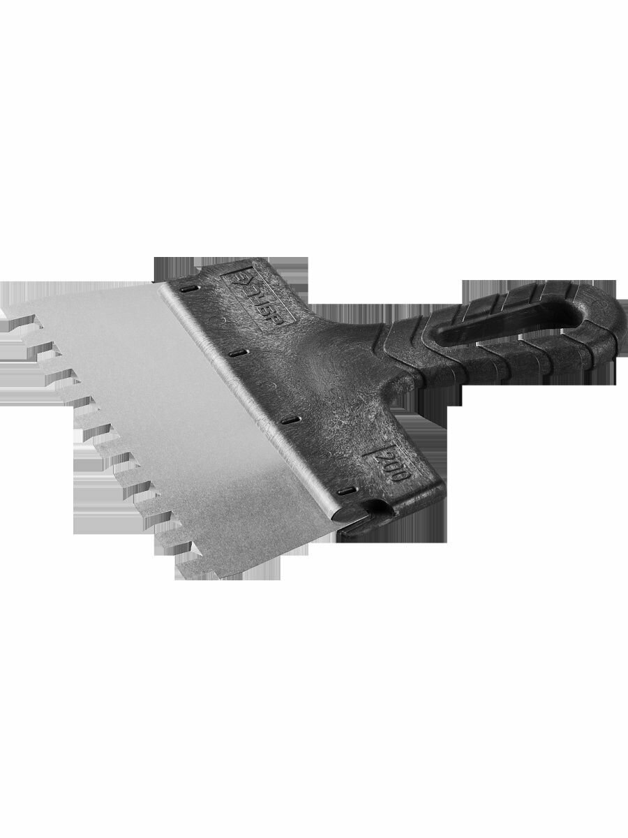 ЗУБР 200 мм, зуб 10х10 мм, зубчатый пластиковая ручка, нержавеющий, фасадный шпатель (10078-20-10)