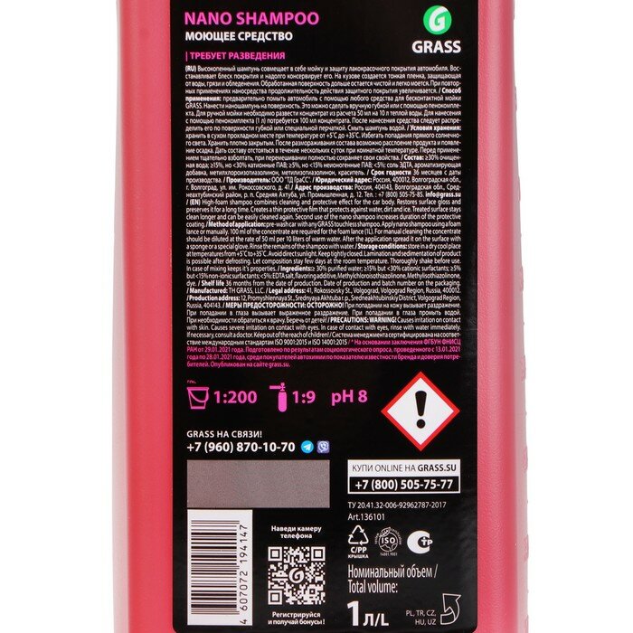 Наношампунь Grass Nano Shampoo, 1 л, контактный информация: