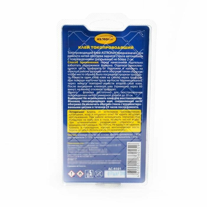 Клей Токопроводящий Для Ремонта Нитей Обогрева Стекол Серия Блистер ASTROHIM AC9101