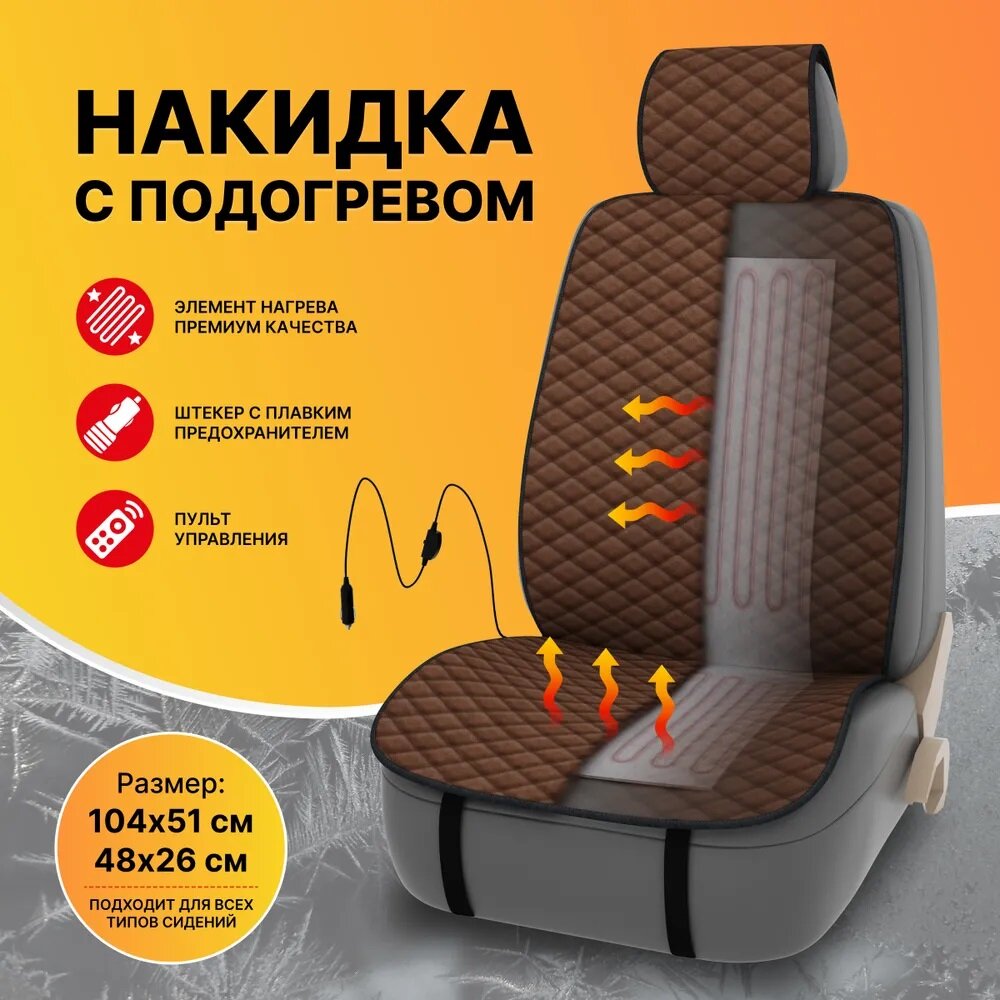 Накидка на сиденье с подогревом FERVOR "PSV" коричневый 2х режим (1шт)