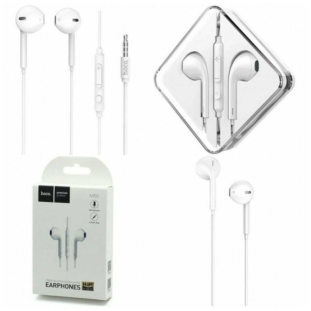 Hoco Наушники Hoco M55, проводные, вкладыши, микрофон, Jack 3.5, 1.2 м, белые