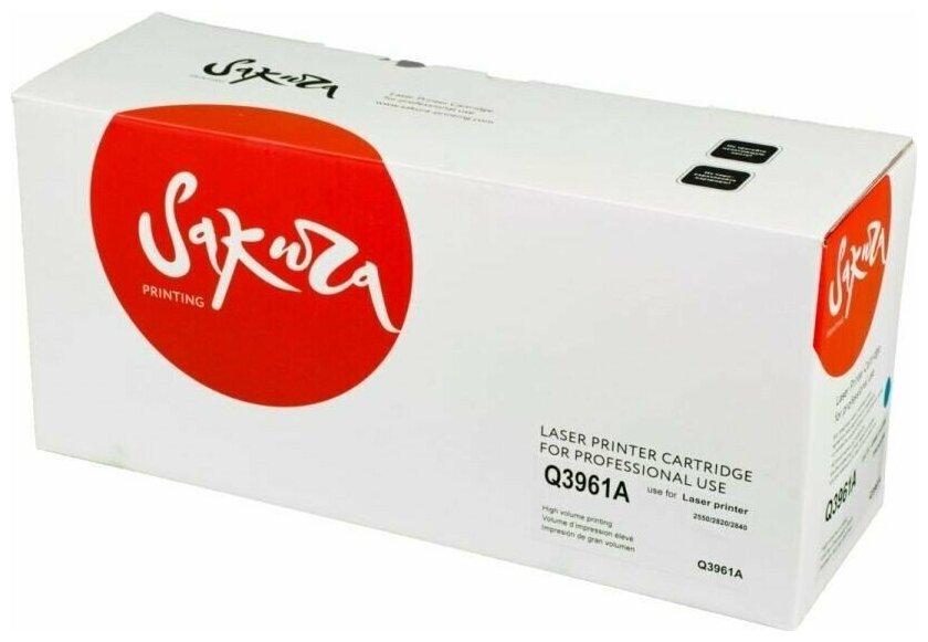 Картридж SAKURA Q3961A для HP LJ 2550, 2550L, 2550LN, 2550N, 2820, 2840, 3000, 3000DN, 3000DTN, 3000N, голубой, 4000 к.