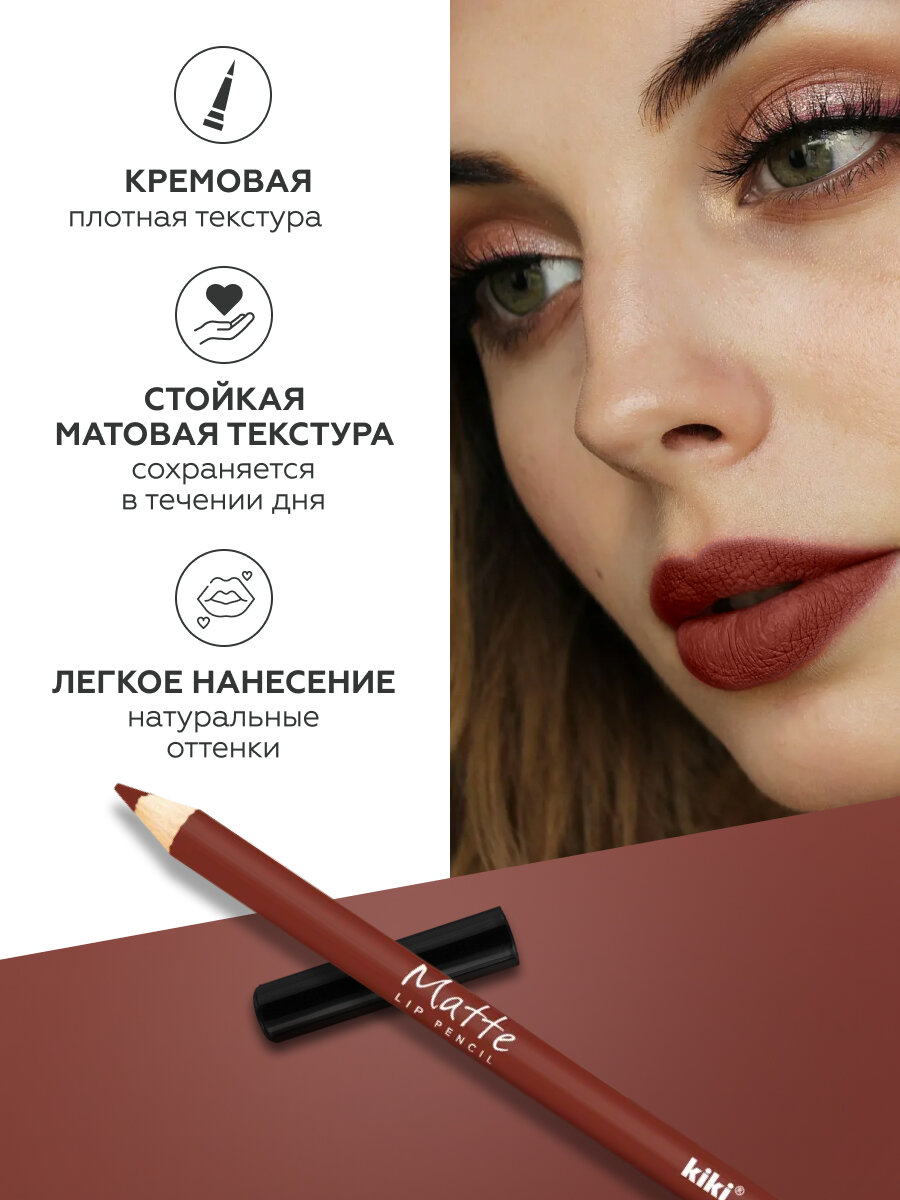 Карандаш для губ kiki MATTE, водостойкий, матовый, насыщенный цвет, тон 25, коричневый, косметический карандаш для губ 142 ₽