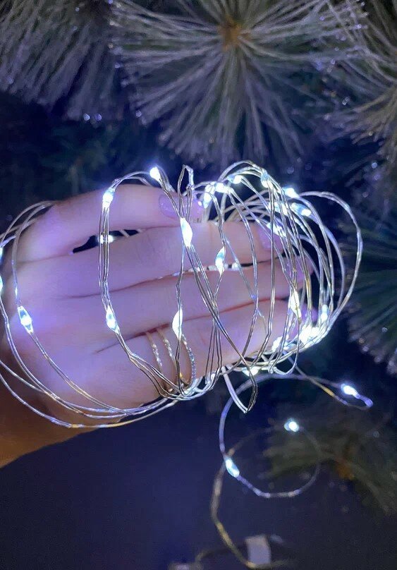 Новогодняя гирлянда "Роса" на батарейках 10 м (100 лампочек) холодный белый свет информация: