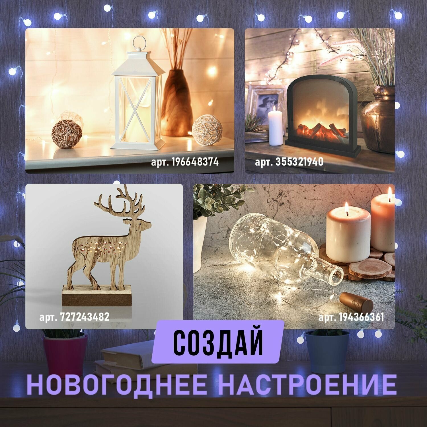 Гирлянда «Нить» 7 м, IP20, тёмная нить, 180 ламп, свечение тёплое белое, 8 режимов, 220 В, 187157