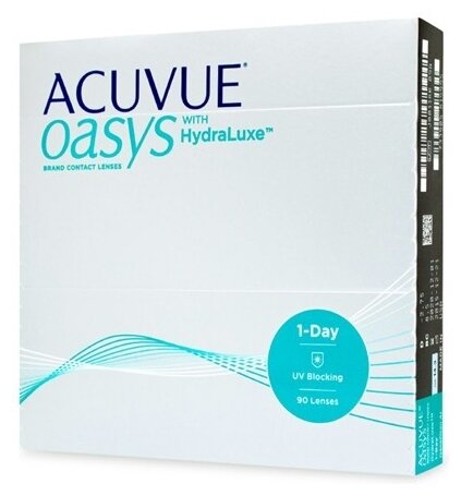 1-Day ACUVUE Oasys HydraLuxe -9.00 / 14.3 / 9.0, 180 штук (2 пачки по 90 линз) контактные однодневные. 1 День Акувью Оазис. Срок замены - 1 день.