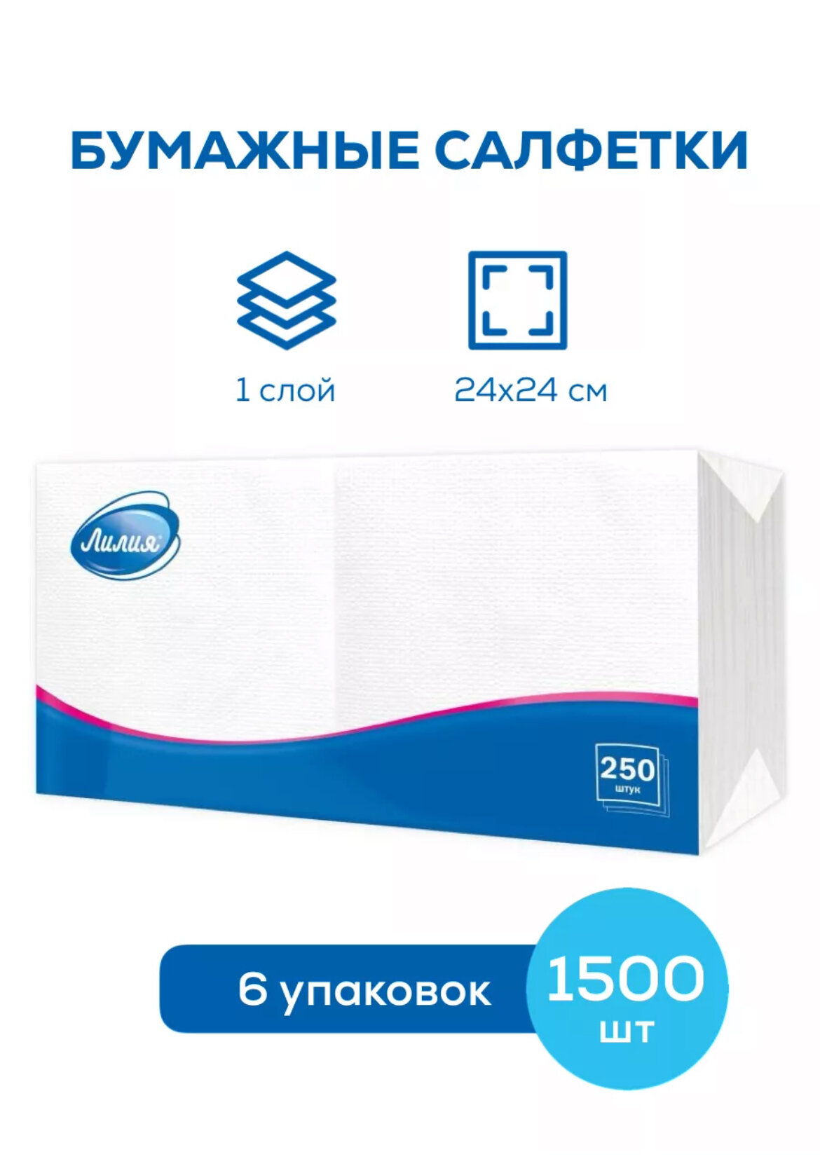 Салфетки Лилия белые однослойные, 250 листов, 6 пачек информация: