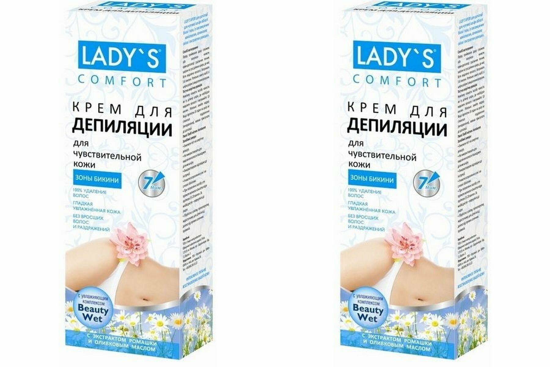 Крем для депиляции зоны бикини Lady'S Comfort с экстрактом ромашки и оливковым маслом для чувствительной кожи, 100мл