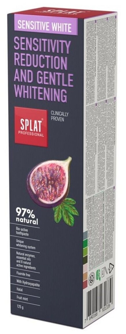 Зубная паста Splat Pro-Biome Sensitive White с экстрактом инжира, снижение чувствительности и бережное отбеливание эмали, без фтора, 125 мл